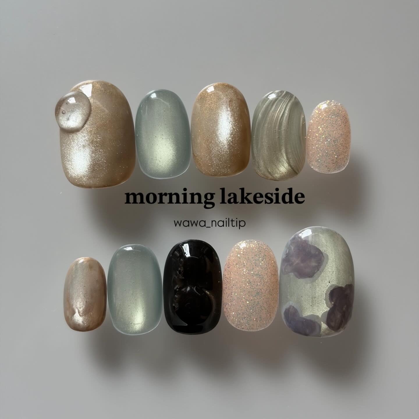 朝の湖の畔をイメージしたデザインです。